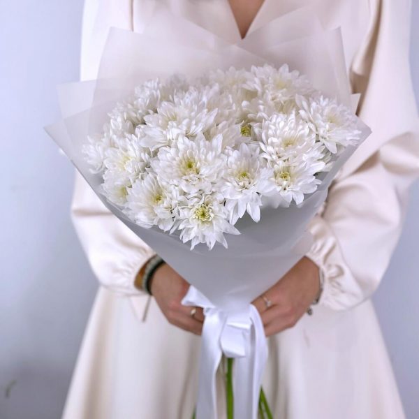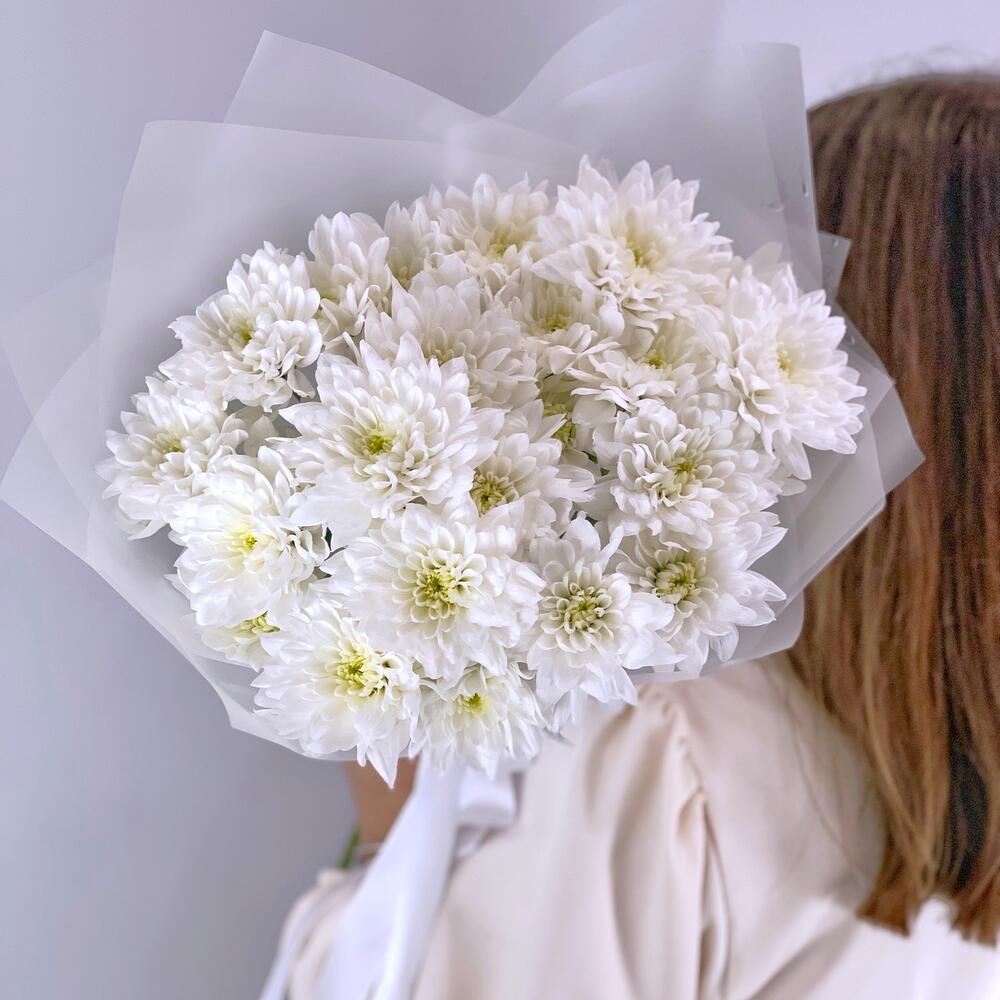 Букет девушке на 8 марта из белоснежных хризантем в Арсеньеве